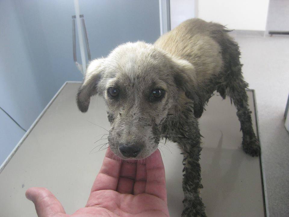 From the texture of her fur and skin, we believe Hera had been in this condition for weeks. It’s a miracle that she managed to survive. We had to wash her with oil to remove the tar, dirt, and dead skin before we could begin to treat her with medicated baths and antibiotics. She is in poor health, but our hope is that she will pull through.